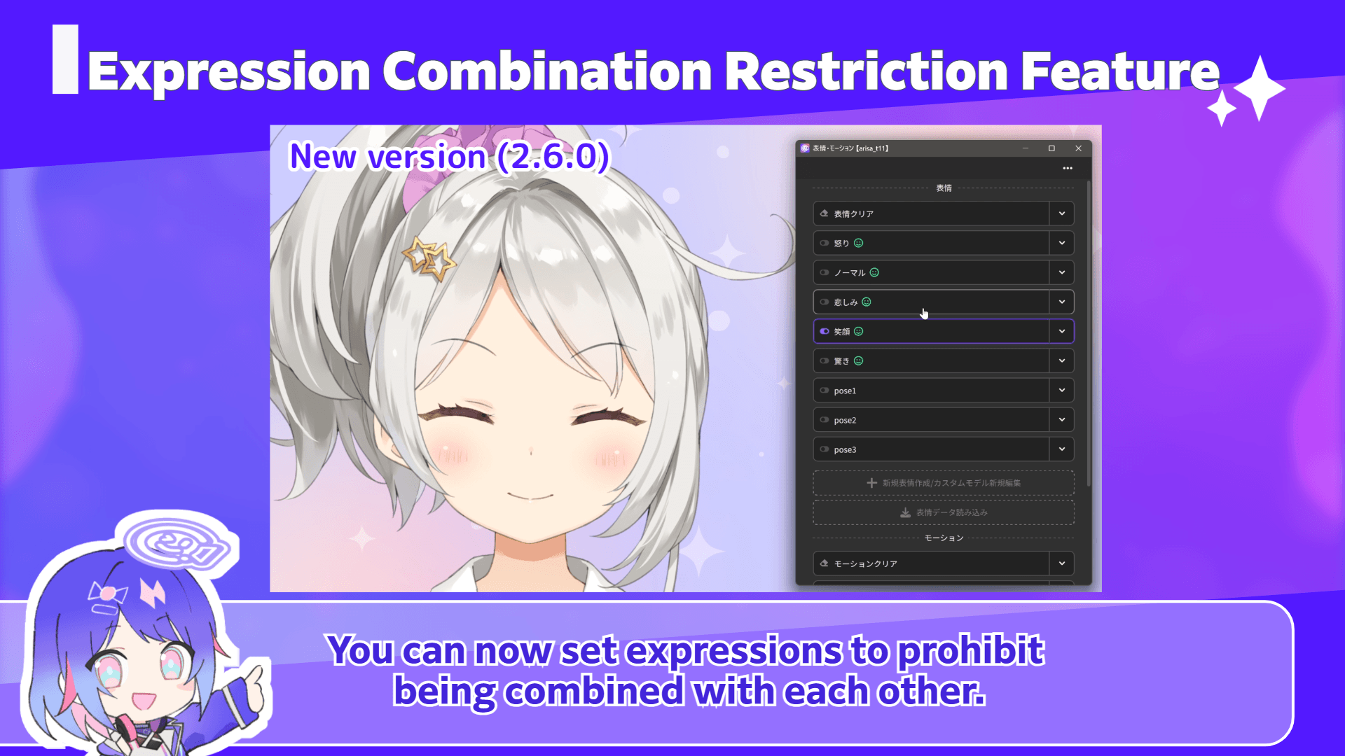 This eliminates the need for manually turning off one expression before activating another, and prevents unintended combinations like smiling + crying, as modelers intended.